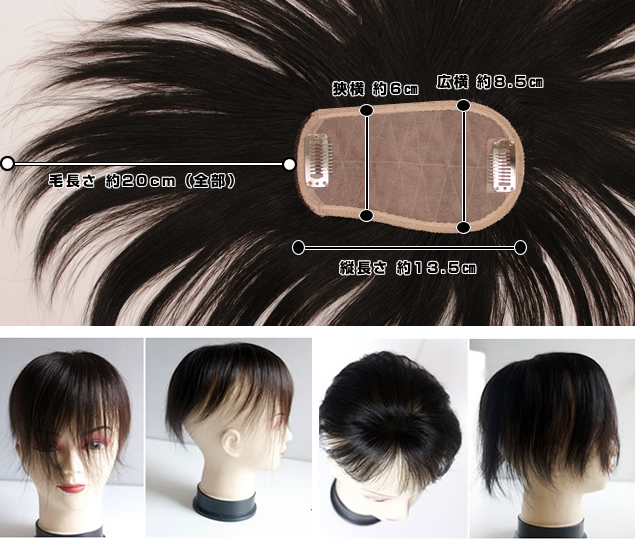 [髪色:ナチュラルブラック&明るめのナチュラルブラック色] [レミーヘアー] [毛染め無] [キューティクル無] [リアル地肌BOOM] [毛長さ20cm] [毛長さ特注有]